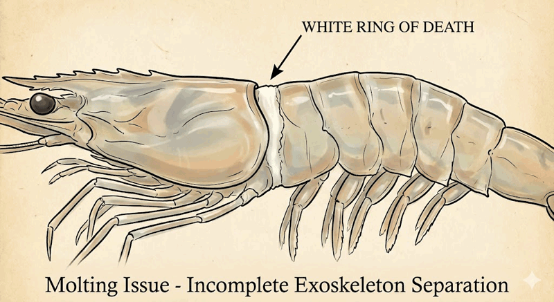 Ha azt látod, hogy a garnéla feje és teste között egy fehér csík jelenik meg, és az állat elpusztul, az vedlési hiba.
